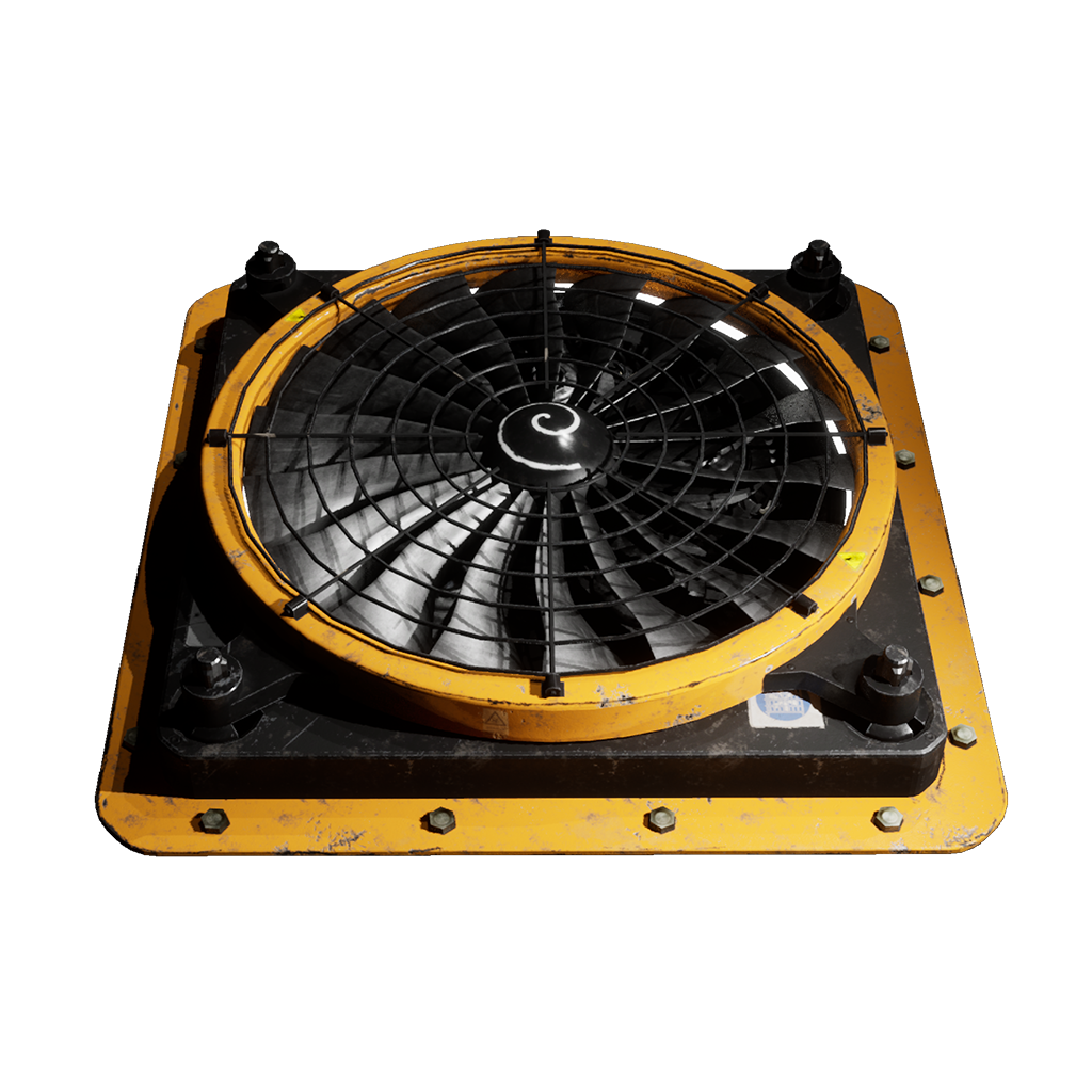Fans can, when activated, levitate the player or Hexahedrons (including devices that might be stacked on top). They can either have a detachable Fan cover (which is what holds the actual fan blades), or a fixed one.