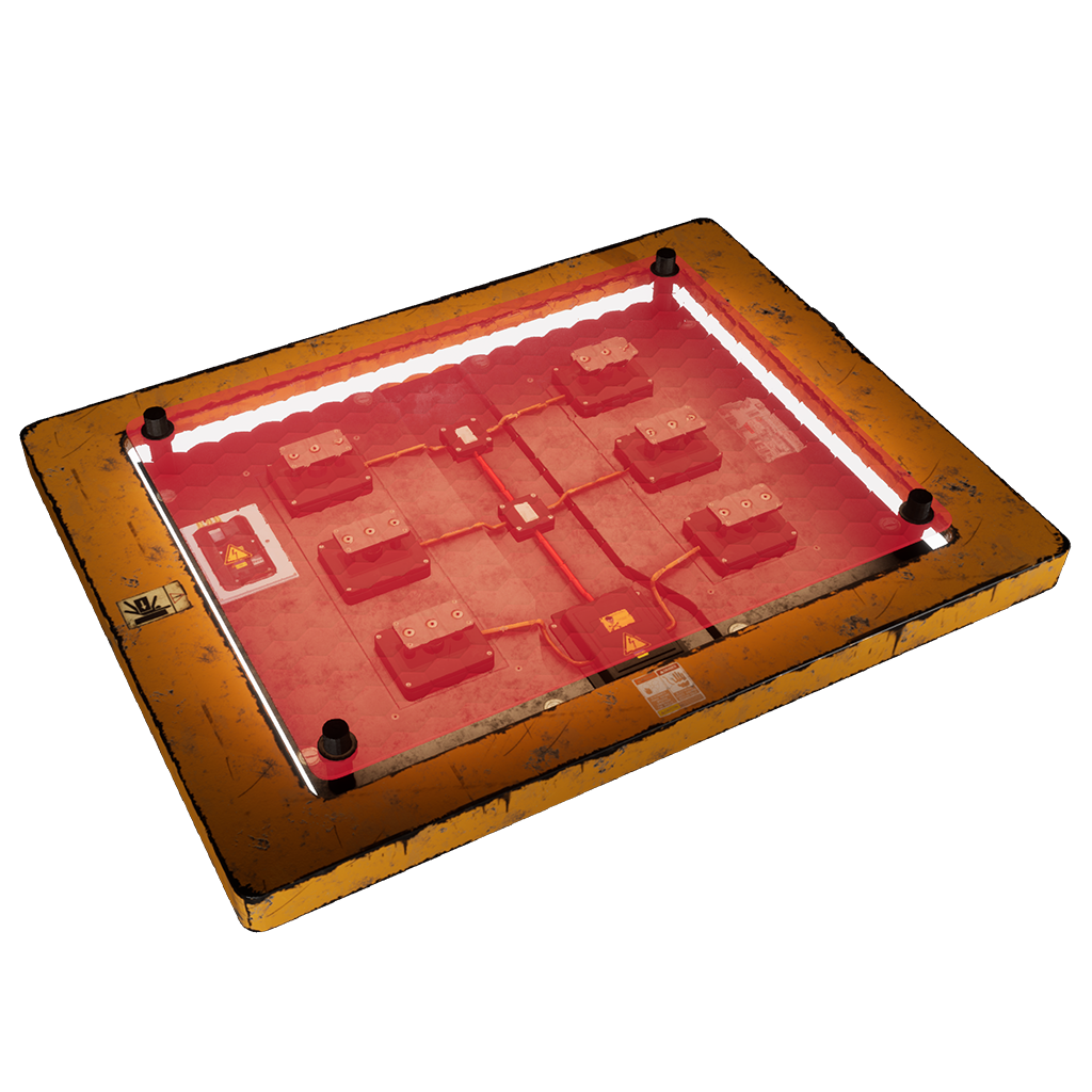 The Pressure Plate is activated either by the player standing on it, or by placing devices (such as a Jammer, Connector, or a Hexahedron) on it.