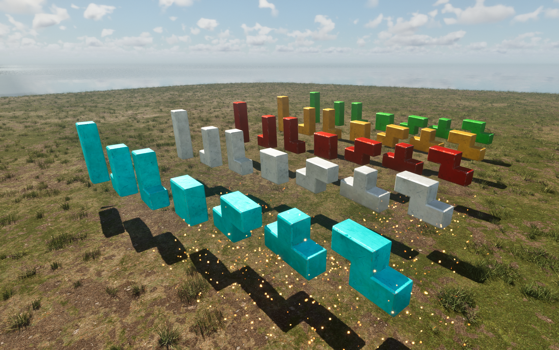 Tetrominos were the main collectible objective in the original The Talos Principle. They exist in the colors green, gold, red, white and blue, as well as the shapes I, J, L, O, S, T, Z.