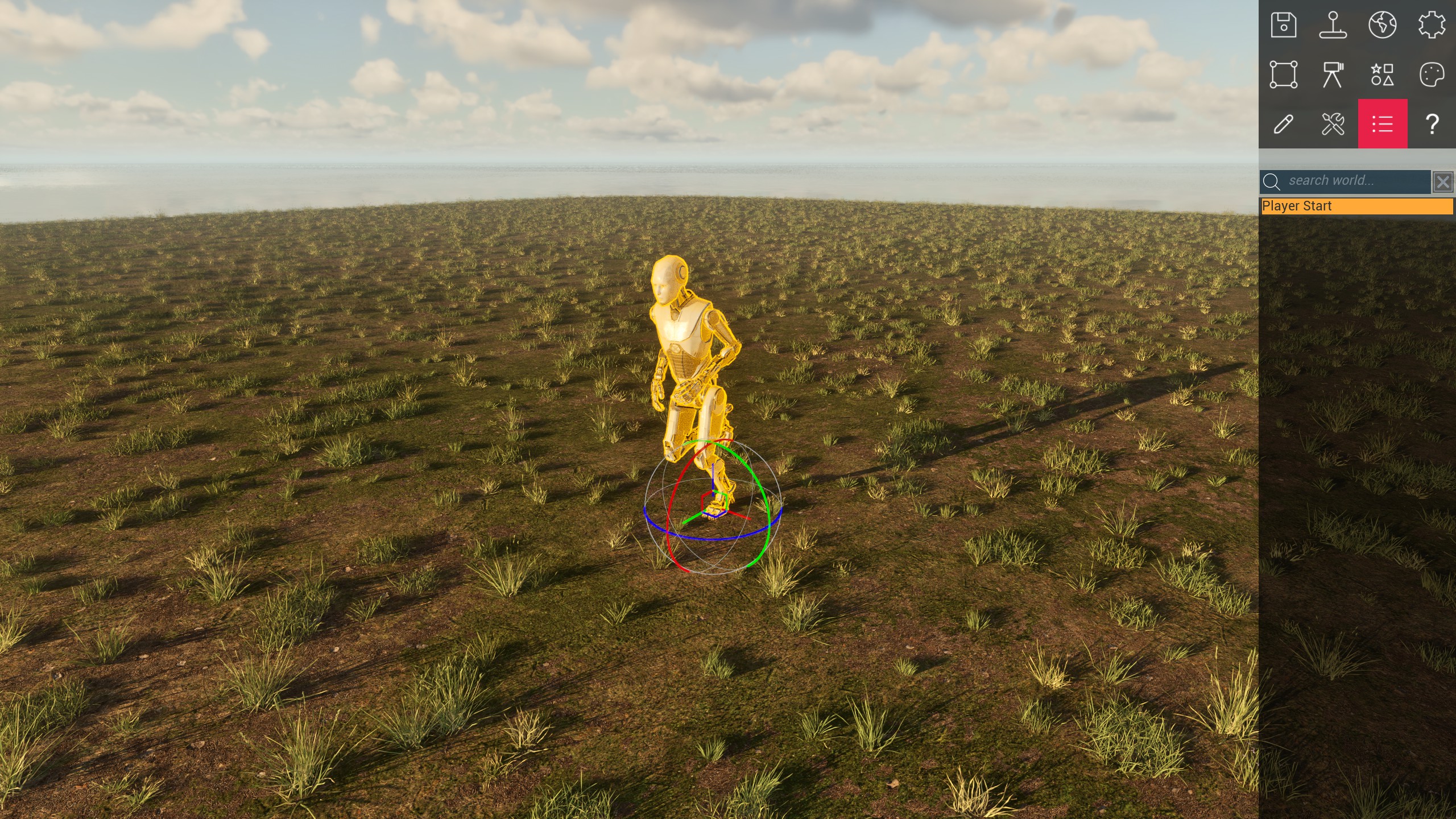 To edit an actor's properties - or just alter it's transform, you need to select it. Actors can be selected in multiple ways: the simplest one is to simply click on it with the Left Mouse Button. The yellow highlight effect indicates that the actor has been selected.