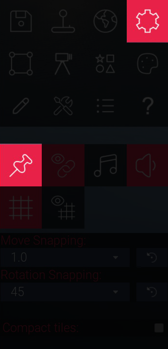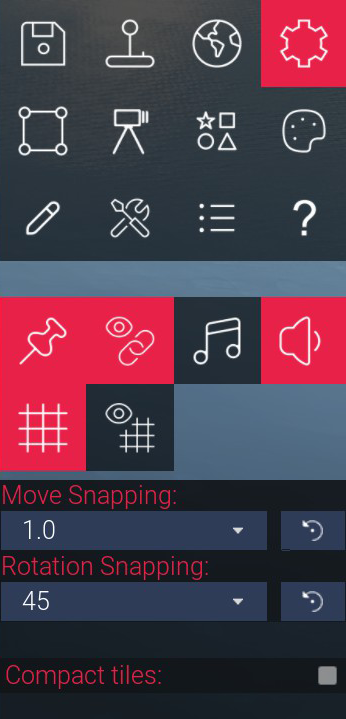 | Toggle position and rotation snapping (Shift + S) Enables or disables grid snapping while moving objects around in the level. |