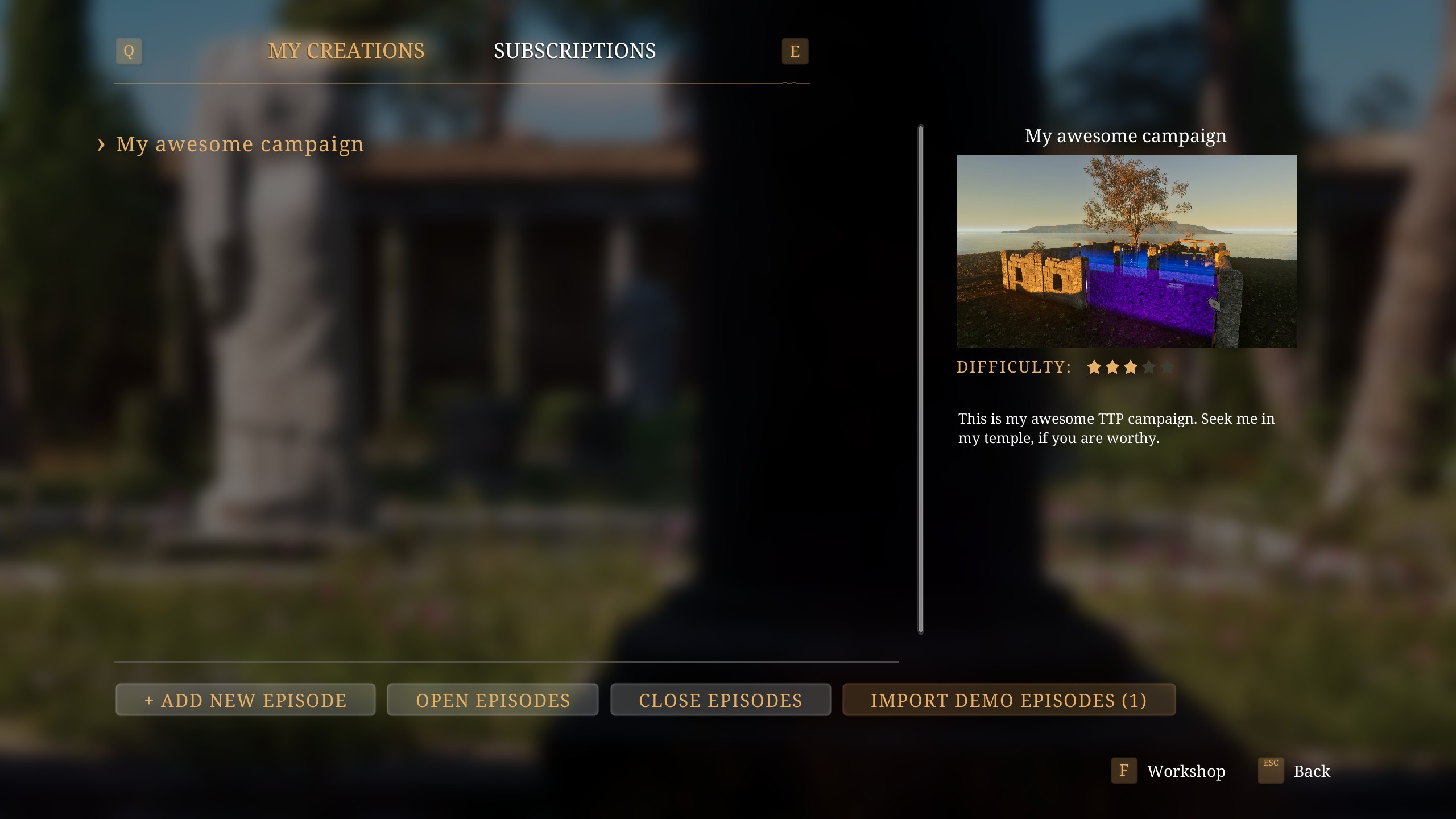 After the migration process is completed, the My Creations tab should list all the imported demo episodes, which can be edited as usual.